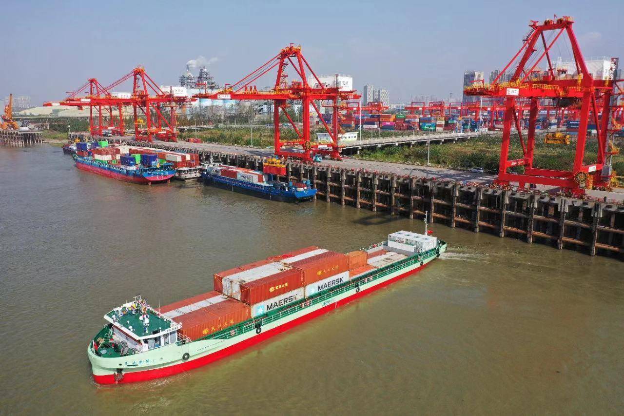 纯电动集装箱货船“华航新能1”号每天往返运输6、7个小时,只需换1次电。