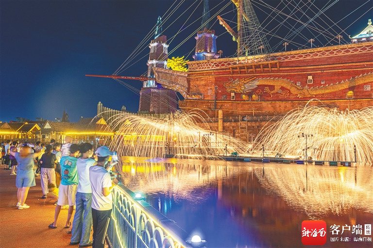骑楼老街灯火通明,人头攒动,烟火气十足,手机、相机“咔嚓”声不绝于耳;海口湾演艺中心大剧场里,杨丽萍导演的舞台作品《平潭印象》让观众大饱眼福;观澜湖电影公社上演的《南洋往事》打造大型场景秀,游客们身着民国服装融入其中,创造自己的“民国故事”……